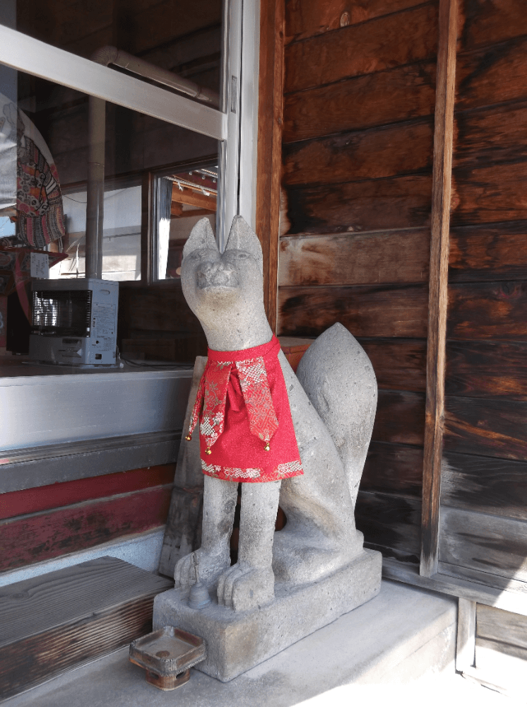 当宮は境内に摂社として「髙山開運稲荷神社」がございます。その髙山開運稲荷様の遣いであるお狐さんの前掛けが、長年の雨風の為に色褪せ、傷んでおりました。ですがこの度、新しい手作りの前掛けをご奉納頂きました。前掛けは赤のちりめん風の記事で作られていて、片方に金、もう片方に銀の鈴がそれぞれあしらわれています。早速付け替えてみるととても鮮やかで、稲荷様の入り口がぱっと明るくなりました。御召し物が新しくなり、お狐さんも稲荷様も大変お喜びの事と思います。ご奉納くださった山本様、誠にありがとうございました。