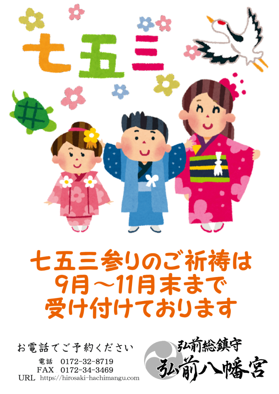 七五三詣は11月15日に行う神事とされていますが、当宮では9月1日よりご祈祷を開始致します。